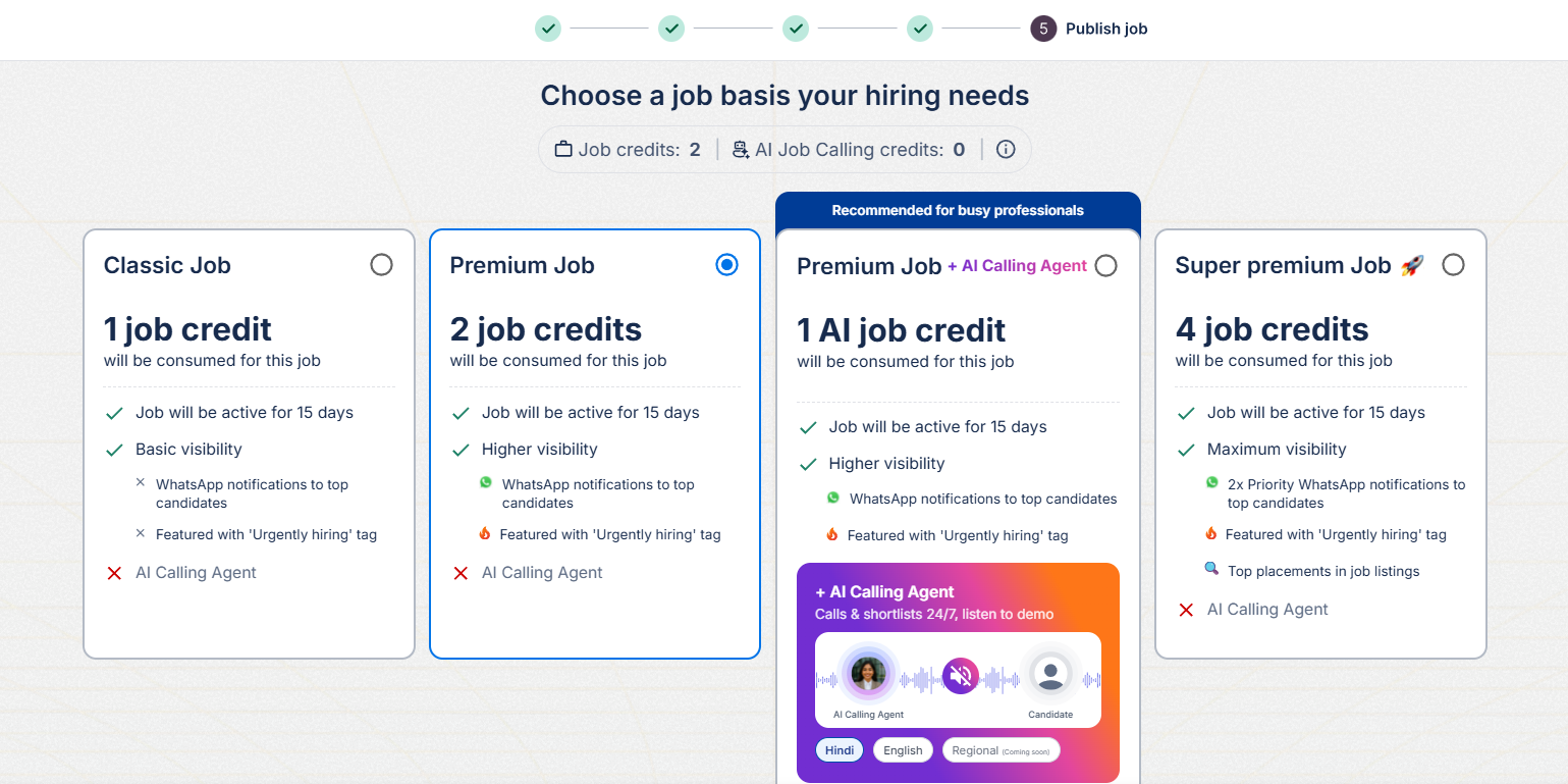 If you do not have sufficient coins in your wallet, you may be prompted to buy more credits. For any queries regarding our plans, contact us at https://wa.me/+918792201301 or email us at employersupport@apna.co