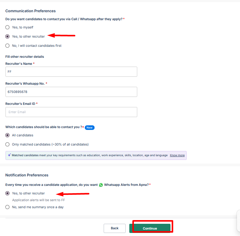 4. Click on the ''Yes, to other recruiter " to add the HR details, and continue.