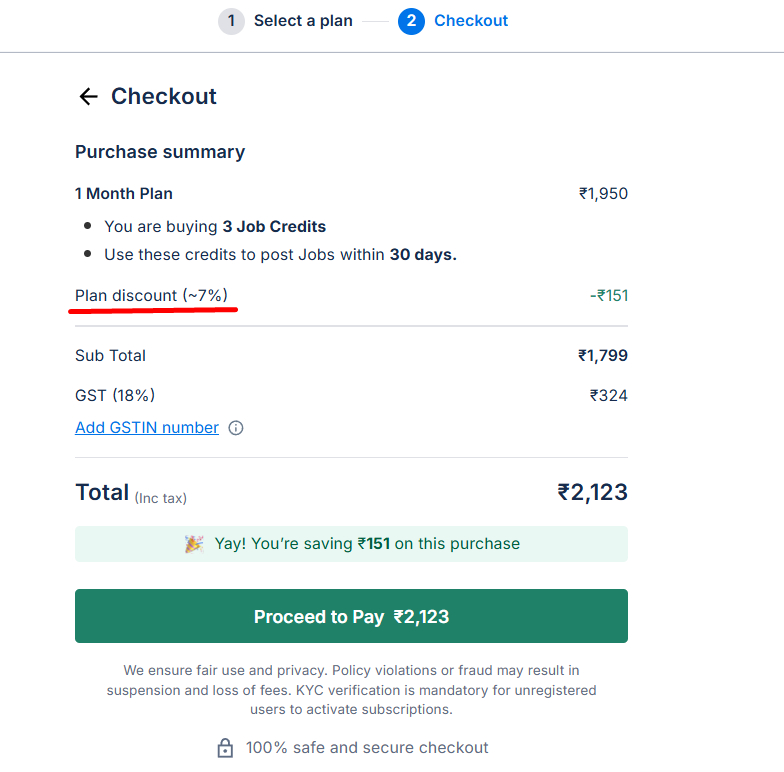 We recommend you check for the latest offers or discounts on the plans from your profile by attempting to make a purchase.