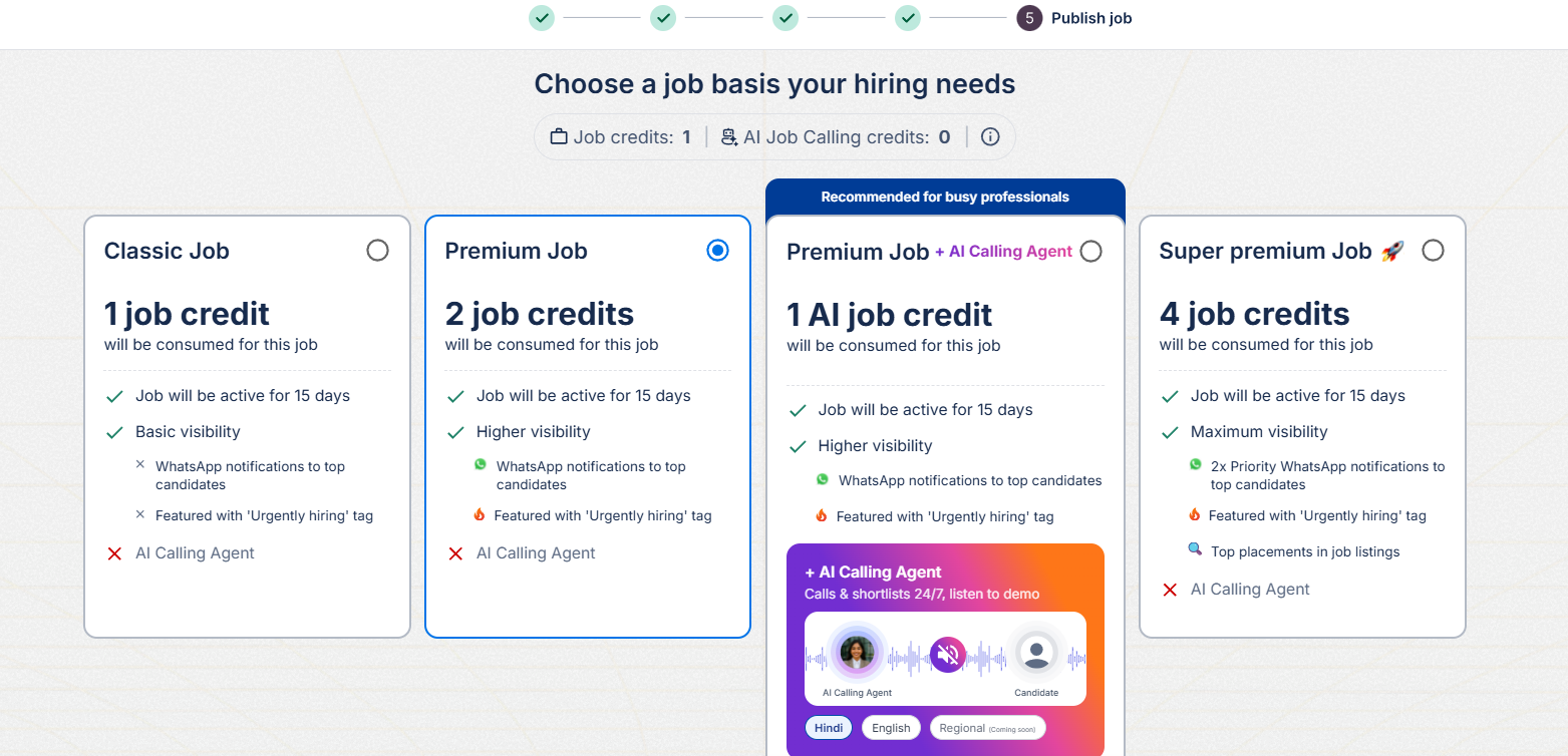 - With 1 AI job Credit - 1 Premium job + AI Calling Agent