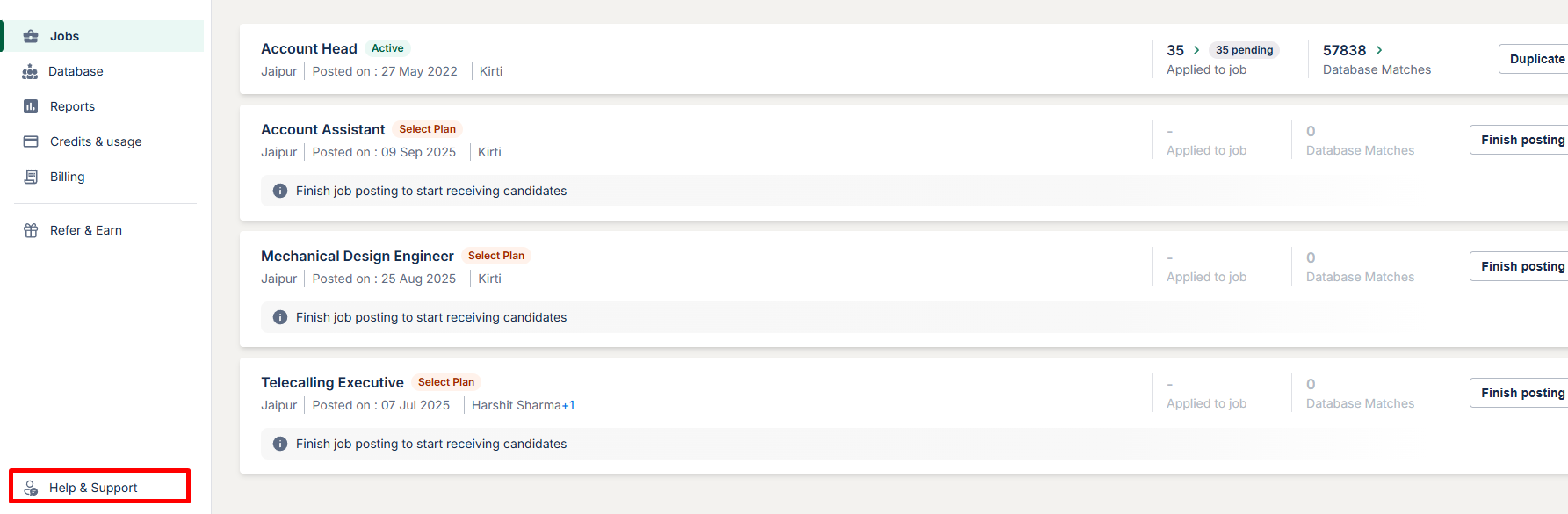 2. Click on the Help & Support icon on the bottom left side of the page.