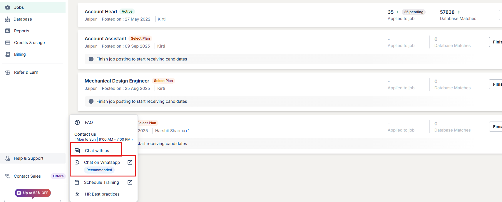 You can also contact us from the employer dashboard by logging in to the employer.apna.co