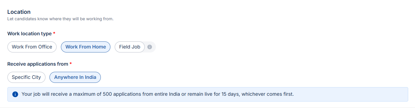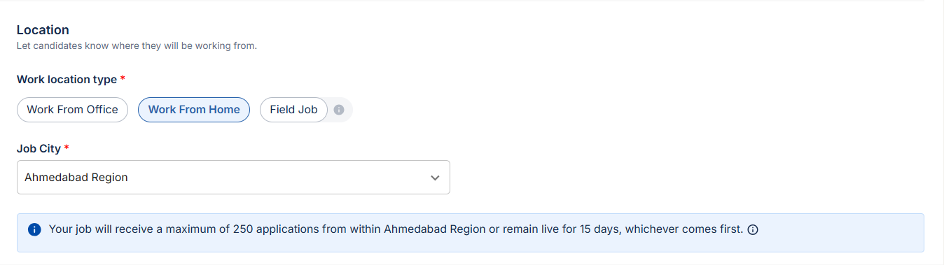 Note: This information is shown during job posting when the Work From Home job type is selected.